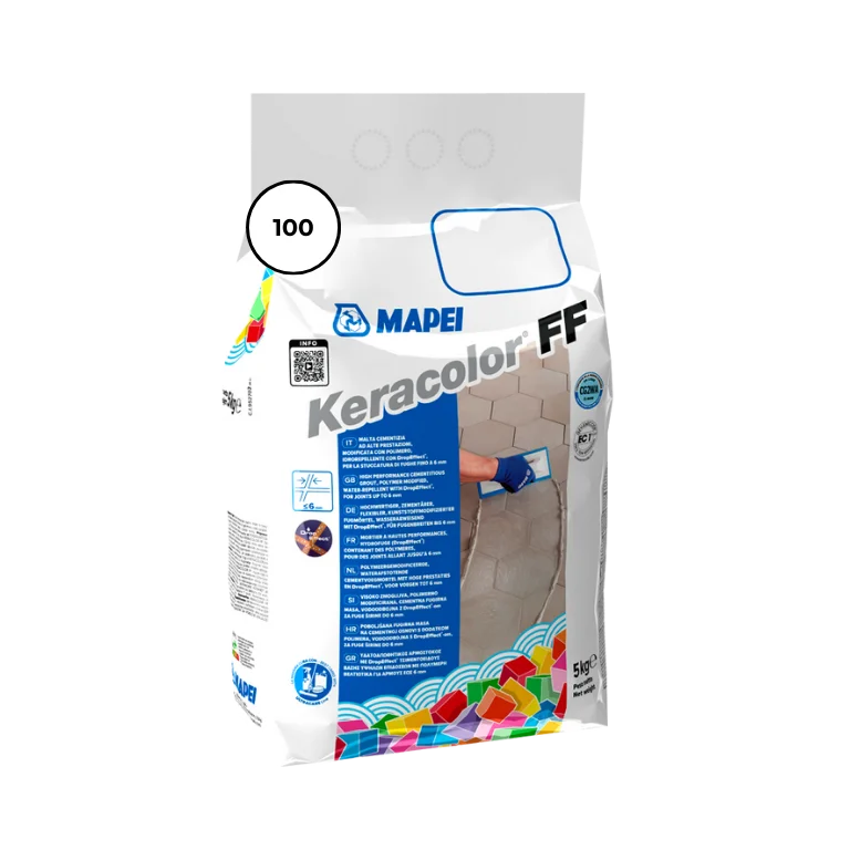 Chit de rosturi îmbunătățit pe bază de ciment, modificat cu polimeri, cu timp mare de lucrabilitate, hidrofobizat, cu efect de respingere a apei – tehnologie DropEffect, pentru rosturi de până la 6 mm.