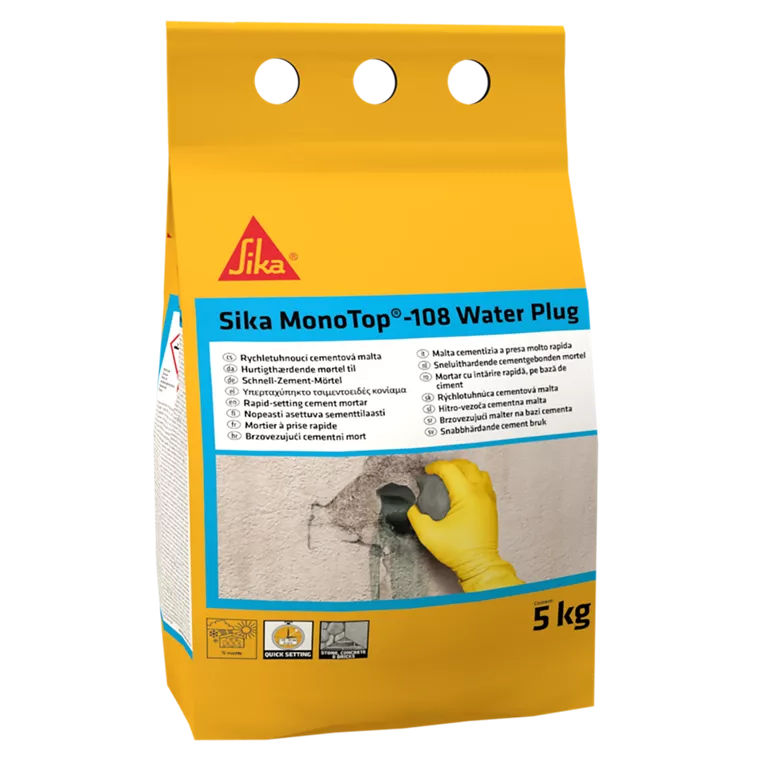 Sika MonoTop-108 WaterPlug este un mortar de ciment cu priză rapidă pentru stoparea infiltrațiilor de apă atât prin elemente din beton, cât și prin elemente de zidarie.